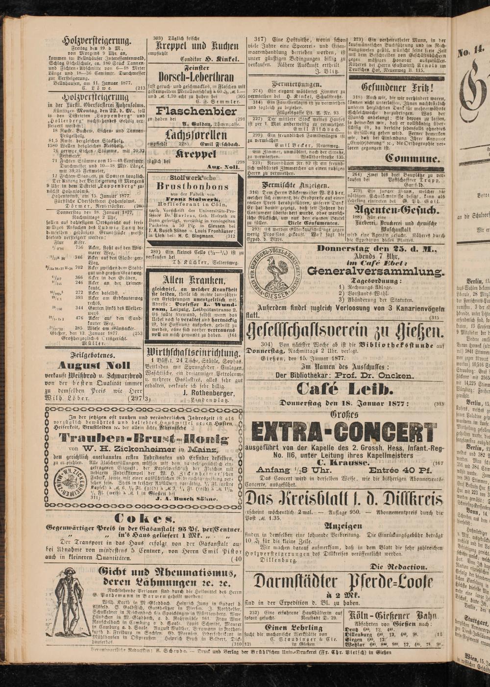 Hohensolms, am 15. Januar 1877. Fürstliche Oberförsterei Hohensolms.
