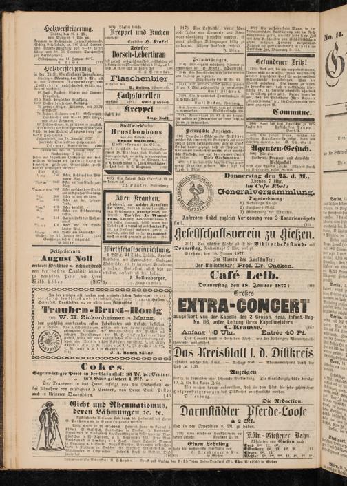 Stollwerk’sche Brustbonbons aus der Fabrik von Franz Stolwerk, Hoflieferant in CöIn, nach Vorschrift des Universitäts-Professor Dr. Hari ess, Geh. Hofrath zu Bonn gefertigt, vorräthig in versiegelten Packeten ä 50 Pfg. in Giessen bei J. A. Busch Söhne u. Louis Fronhäuser; in Lieh bei: H. C. Bingmann. (312
