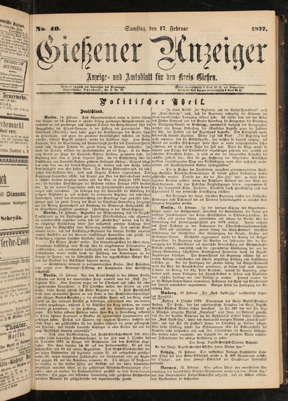 WO-. 40« Samstag, den 17. Februar ZAV7.