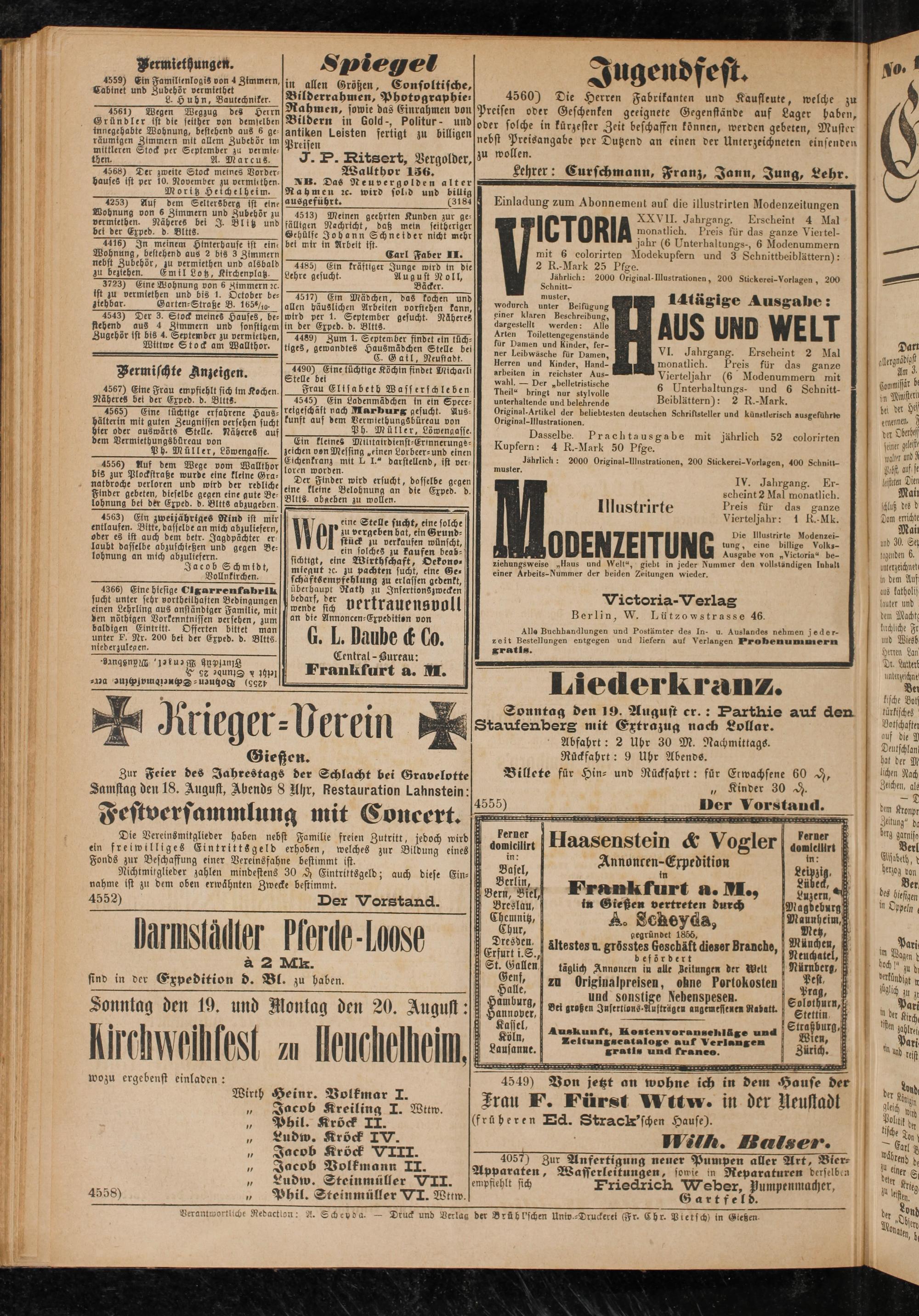 Verantwortliche Redaction: A. Scheyda. - Druck und Verla« der Brühl'schen Univ.-Druckerei (Fr. Ehr. Pietsch) in Gießen-