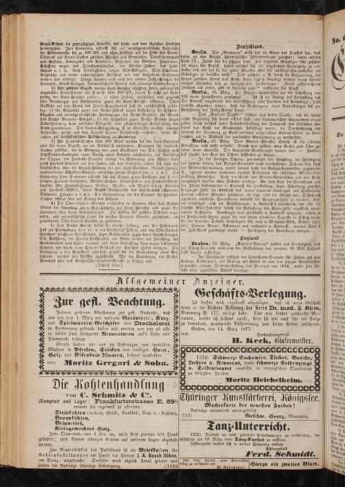 Zur Bequemlichkeit des Publikums ist ein Briefkasten für Kohlenbestellungen am Hause der Herren J. A. Busch Söhne, am Kreuz, angebracht. Derselbe wird täglich 2mal geleert und sinden die Aufträge sofortige Erledigung. (1118