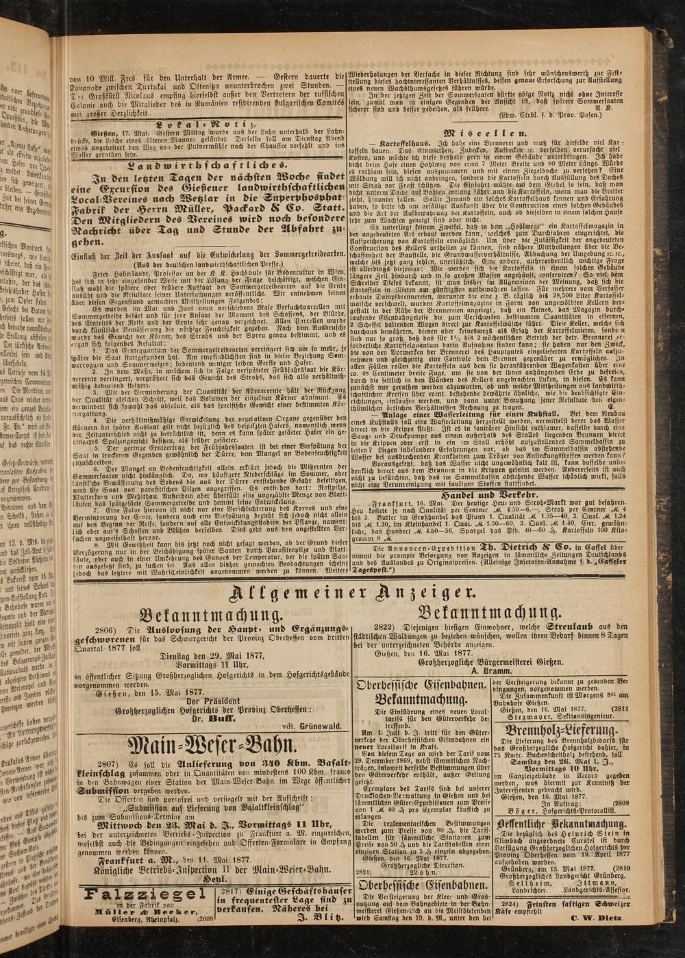 2807) Es soll die Anlieferung von 340 Kbm. Basaltkleinschlag zusammen oder in Quantitäten von mindestens 100 Kbm. franco in den Babnwagen einer Station der Main-Weser-Bahn im Wege öffentlicher Submission vergeben werden.