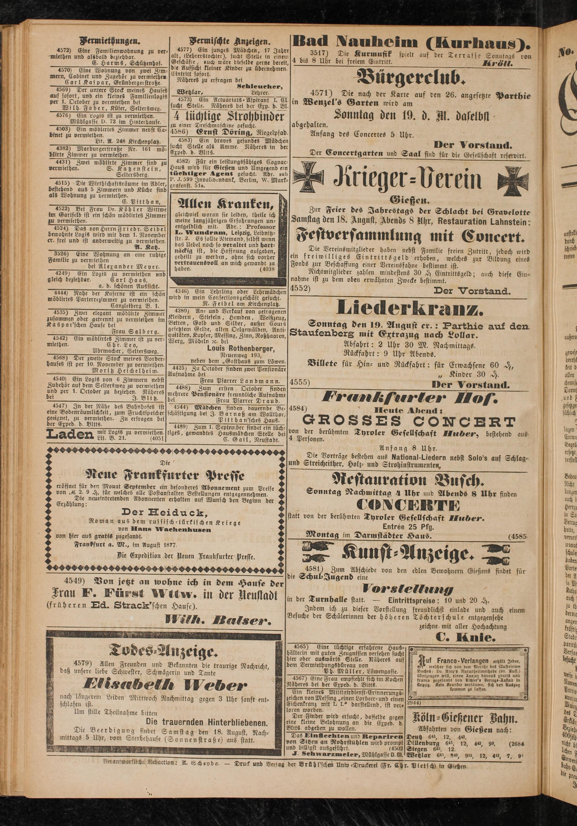 Die Beerdigung findet Samstag den 18. August, Nachmittags 5 Uhr, vom Sterbehause (Sonnenstraße) aus statt.
