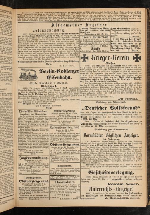 Gießen, den 13. September 1877. Großherzogltche Direction.