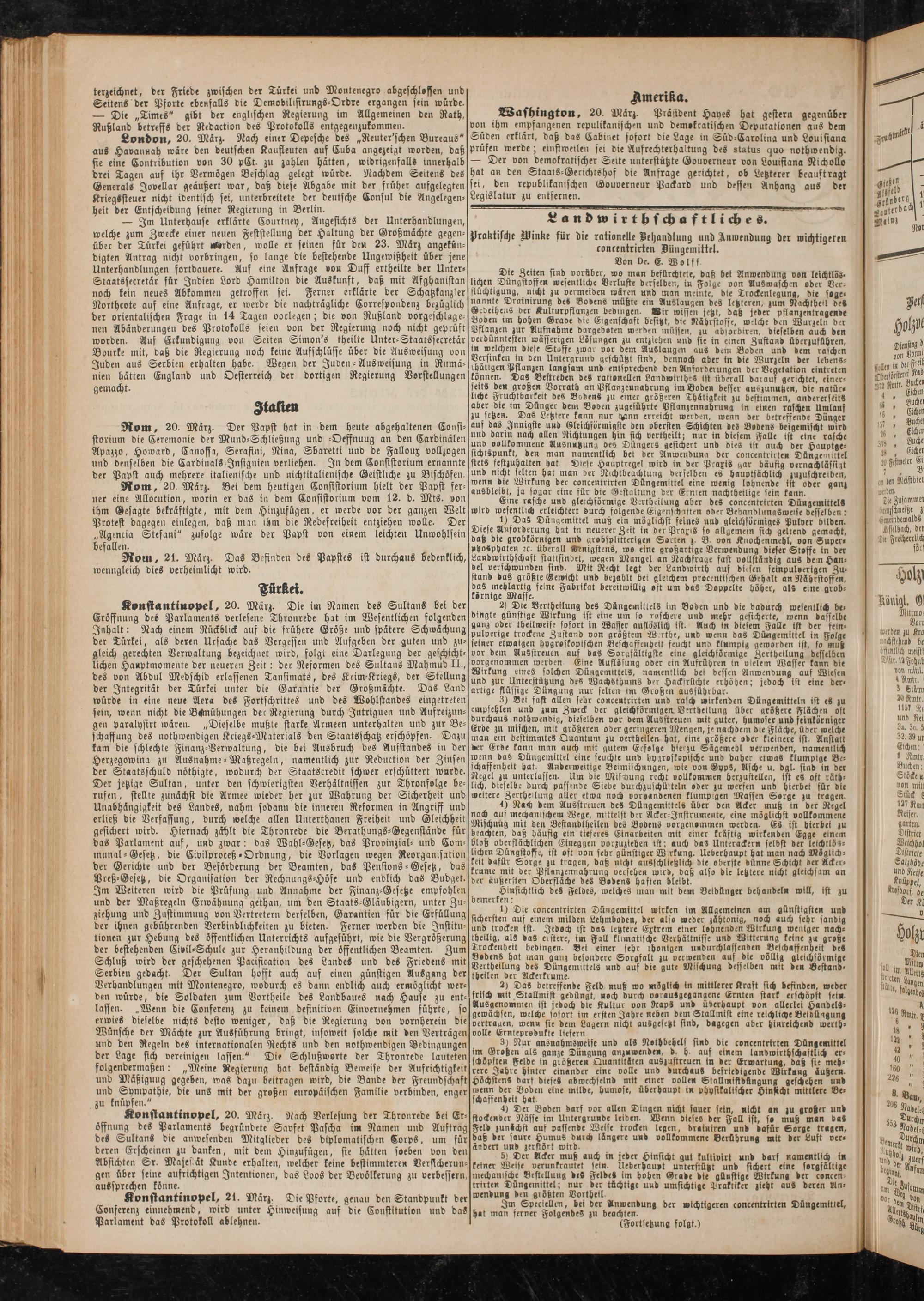 Konstantinopel, 20. März. Nach Verlesung der Thronrede Bei Eröffnung des Parlaments begründete Savfet Pascha im Namen und Auftrag des Sultans die anwesenden Mitglieder des diplomatischen Corps, um für deren Erscheinen zu danken, mit dem Hinzufügen, sie hätten soeben von den Absichten Sr. Majei.ät Kunde erhalten, welcher keine bestimmteren Versicherungen über seine aufrichtigen Intentionen, das Loos der Bevölkerung zu verbestern, aussprechen könne.