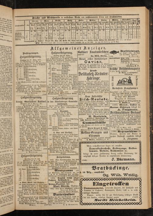 marinirt in cm er von mir neu erfundenen, pikanten, angenehm schmeckenden Sauce; allen Haus- und Gastwrrthschaften, Restaurationen, Delicatessenbandlungen, besonders ober allen Feinschmeckern, da dieselben den Magen erfrischen und den Appetit ungemein anregen, sehr zu empfehlen, pr. Faß 80 bis 100 Stück enthaltend, circa 9 Pfd. schwer, nur 5 Jt