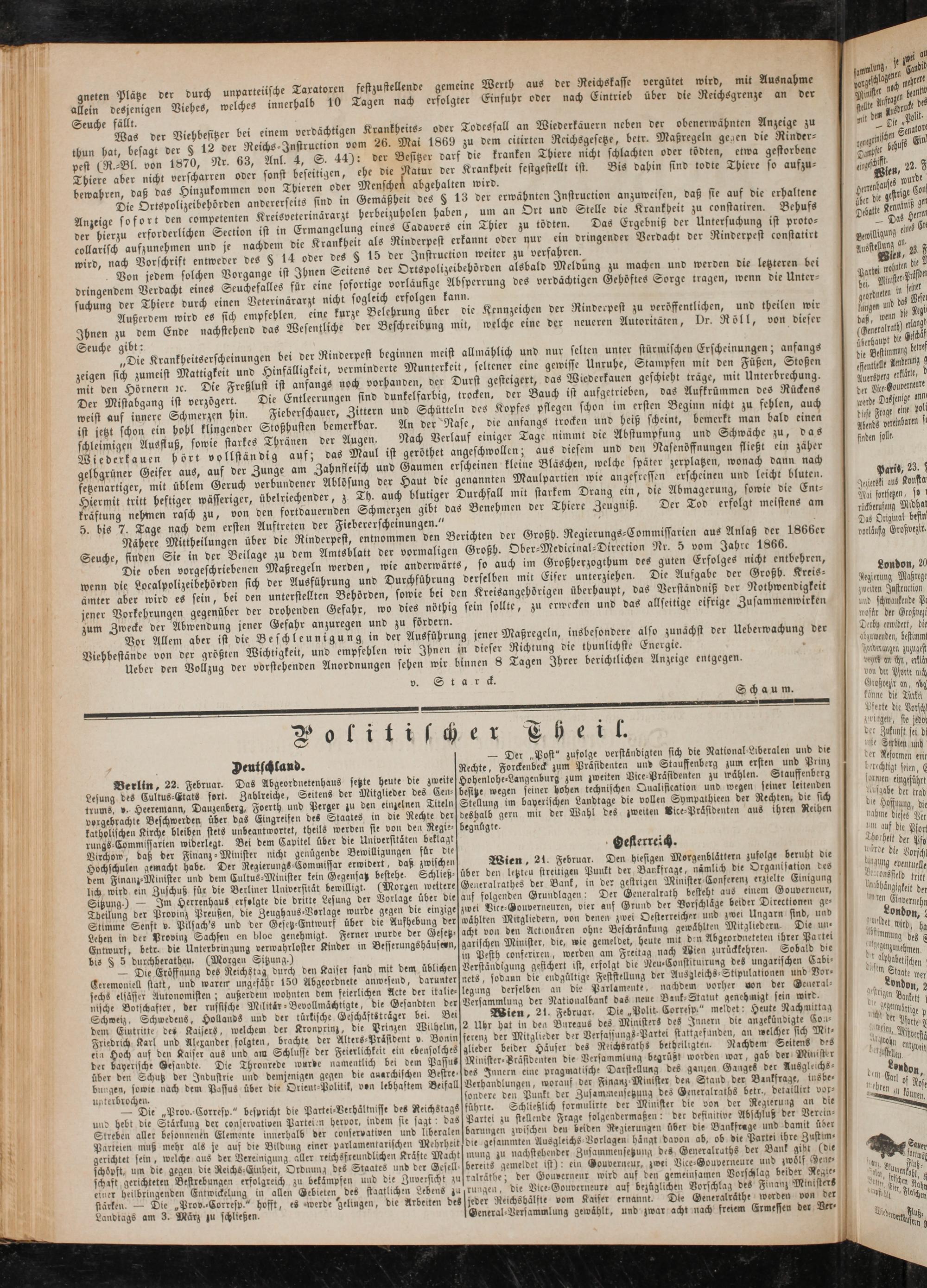 — Der Post" zufolge verständigten sich die National-Liberalen und die »tuMwwwwe Rechte, Forckenbeck zum Präsidenten und Stauffenberg zum erstenund> Pnnz