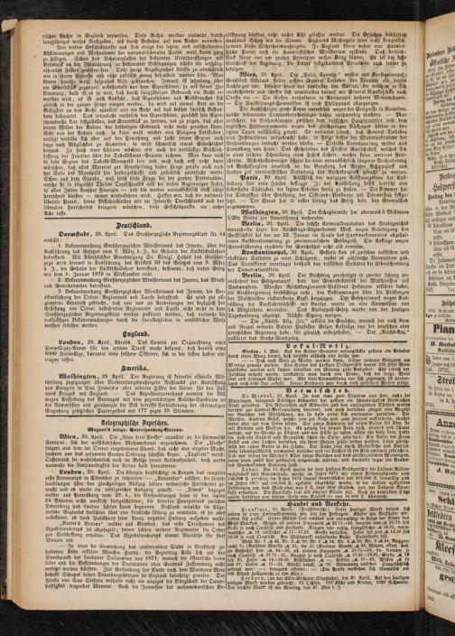 Washington, 29. April. Der Regierung ist keinerlei offictelle Mit- theilung zugegangen über Vorbereitungsmaßregeln Rußlands zur Ausrüstung von Kreuzern in San Francisco oder anderen Häfen der Union für den Fall eines Krieges mit England. — Das Repräsentantenhaus verwies die Bill wegen Aufhebung des Vertrages mit dem gegenwärtigen Anlethe-Syndicate an die Commission und genehmigte die Bill betreffs Verhinderung der abermaligen Einziehung gesetzlichen Papiergeldes mit 177 gegen 35 Stimmen.