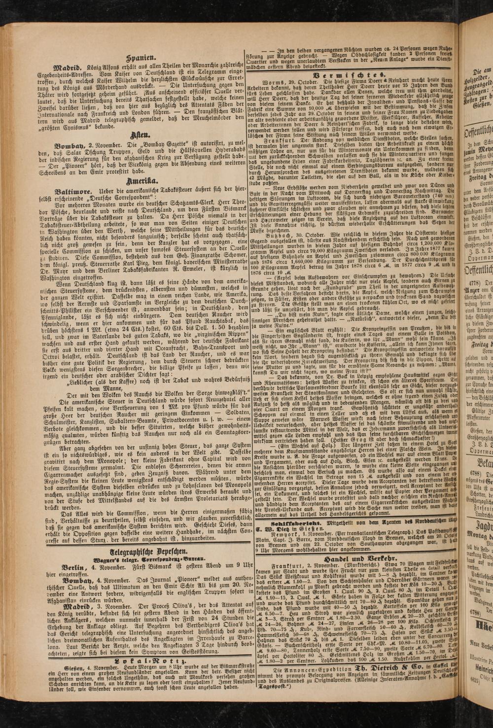 Berlin, 4. November. Fürst Bismarck ist gestern Abend um 9 Uhr hier eingetroffen. „