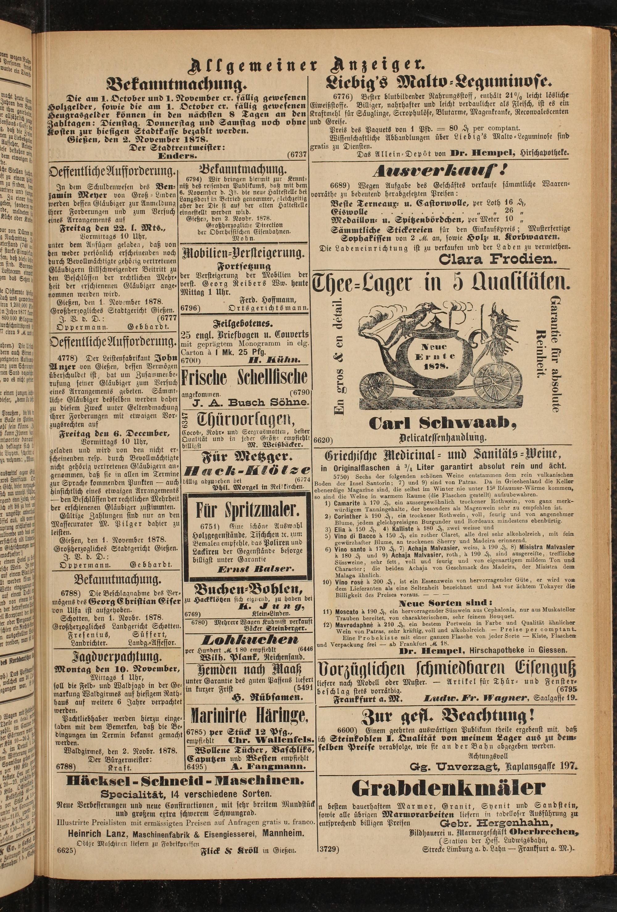 Gießen, den 1 Novmiber 1878. Großherzogliches Stadtgericht Gießen.