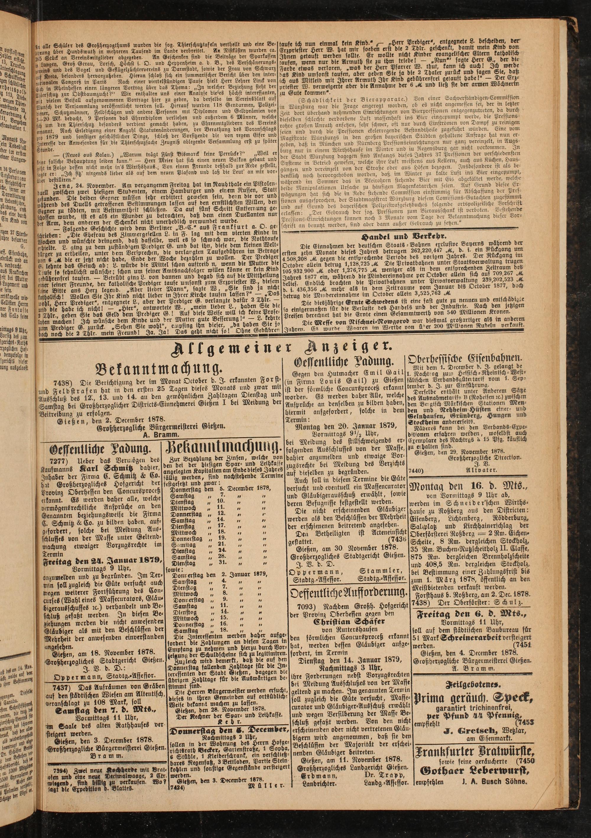 Gießen, am 18. November 1878. Großher-ogliches Stadtgericht Gießen.