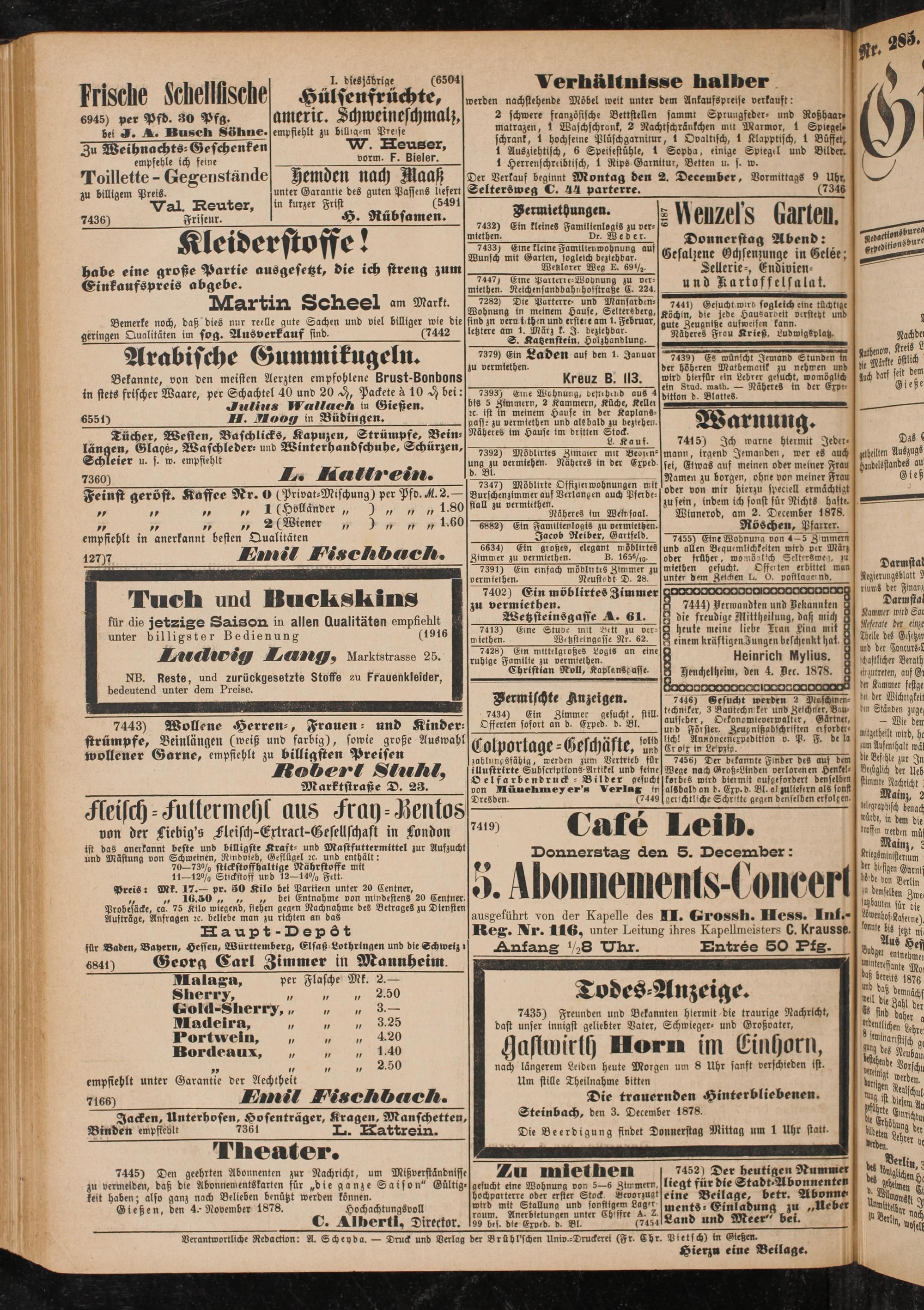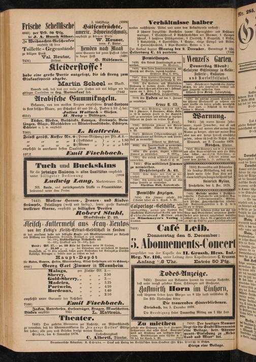 Gießen, den 4.-November 1878. Hochachtungsvoll