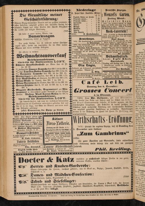 Ich bemerke hierbei, daß trotz der vorstehend beveutenven Preisrevuction die Qualitäten unverändert geblieben sind und bin ich in der Lage, was Güte ver Waaren unv deren wirk- liche Billigkeit anbelangt