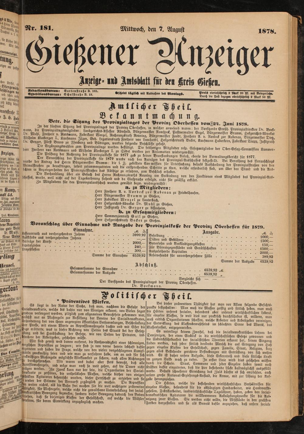 cy , ^etr. die Sitzung des Provinzialtages der Provinz Oberheffen vomZ2^. Juni 1878.