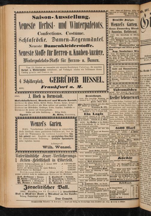 Vom 15. October an versenden wir unseren diesjährigen Catalog, die neuesten Herbst- U. Wintermoden enthaltend; auf Verlangen senden wir Jedermann diesen Catalog gratis und franco zu.