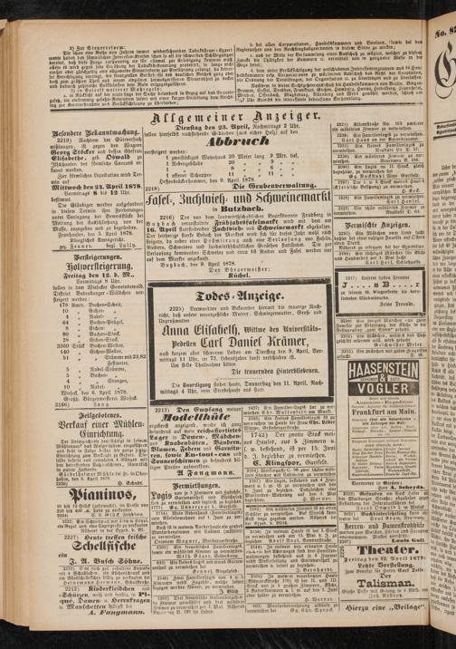 Die Beerdigung findet heute, Donnerstag den 11. April, Nach, mittags 4 Uhr, vom Sterbehause aus statt.