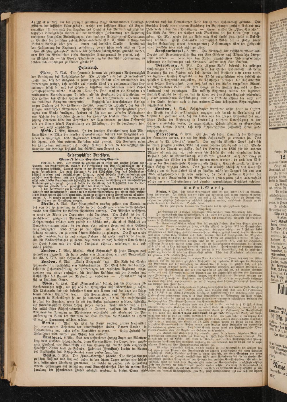 Berlin 8. Mai. Die „Prov.--Corresp." schreibt: Die Verhandlungen zwischen, Rußland und England haben in den letzten Tagen wieder eine lebhaftere, bestimmtere Wendung genommen, an welche in London und Petersburg erneute Hoffnungen auf Erreichung eines Einverständnisses über die weitere Behandlung der schwebenden Fragen geknüpft werden: in diesem Sinne wird