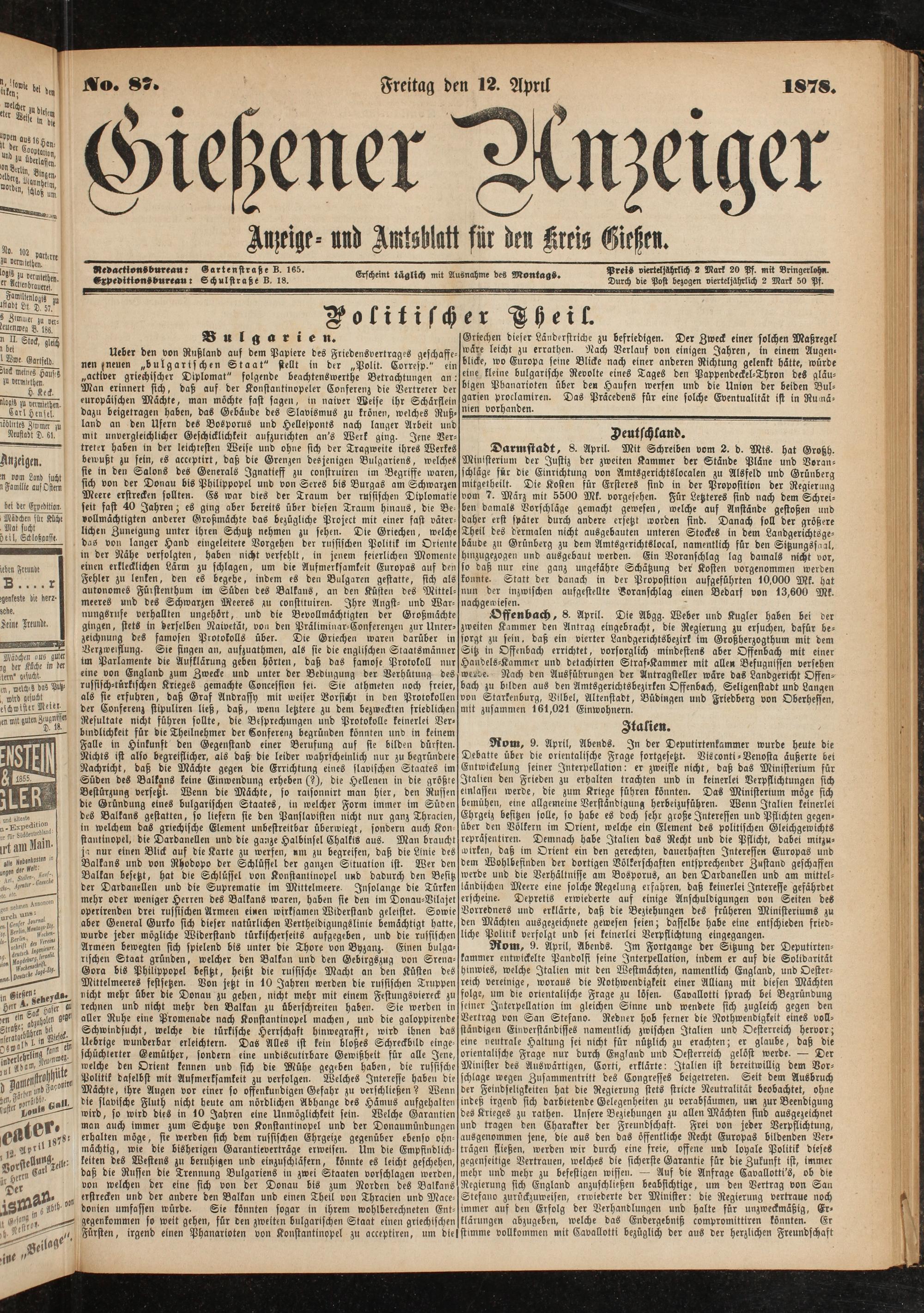So. 85. Freitag den 12. April 1878.