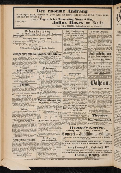 Lollar, den 11. Februar 1878. Großherzogl. Bürgermeisterei Lollar.