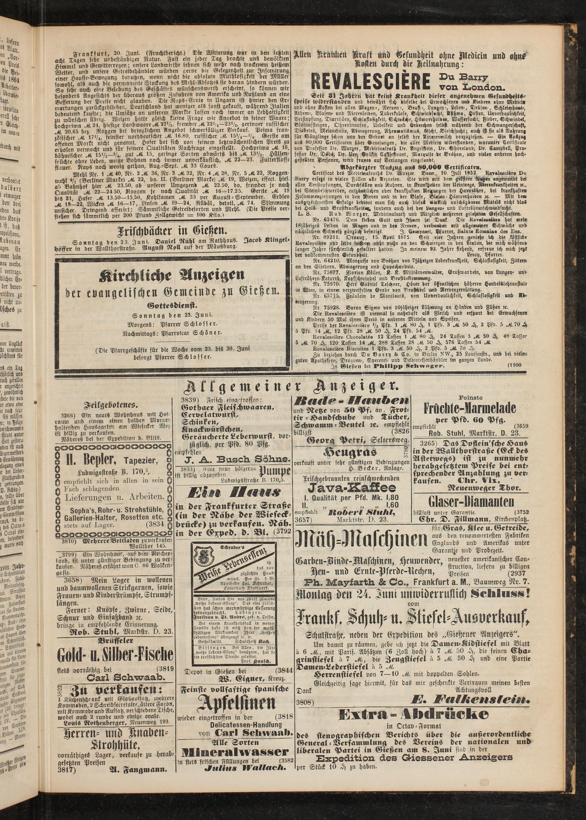 Sonntag den 23. Juni. Morgens: Pfarrer Schlosser. Nachmittags: Pfarrvicar Schöner.