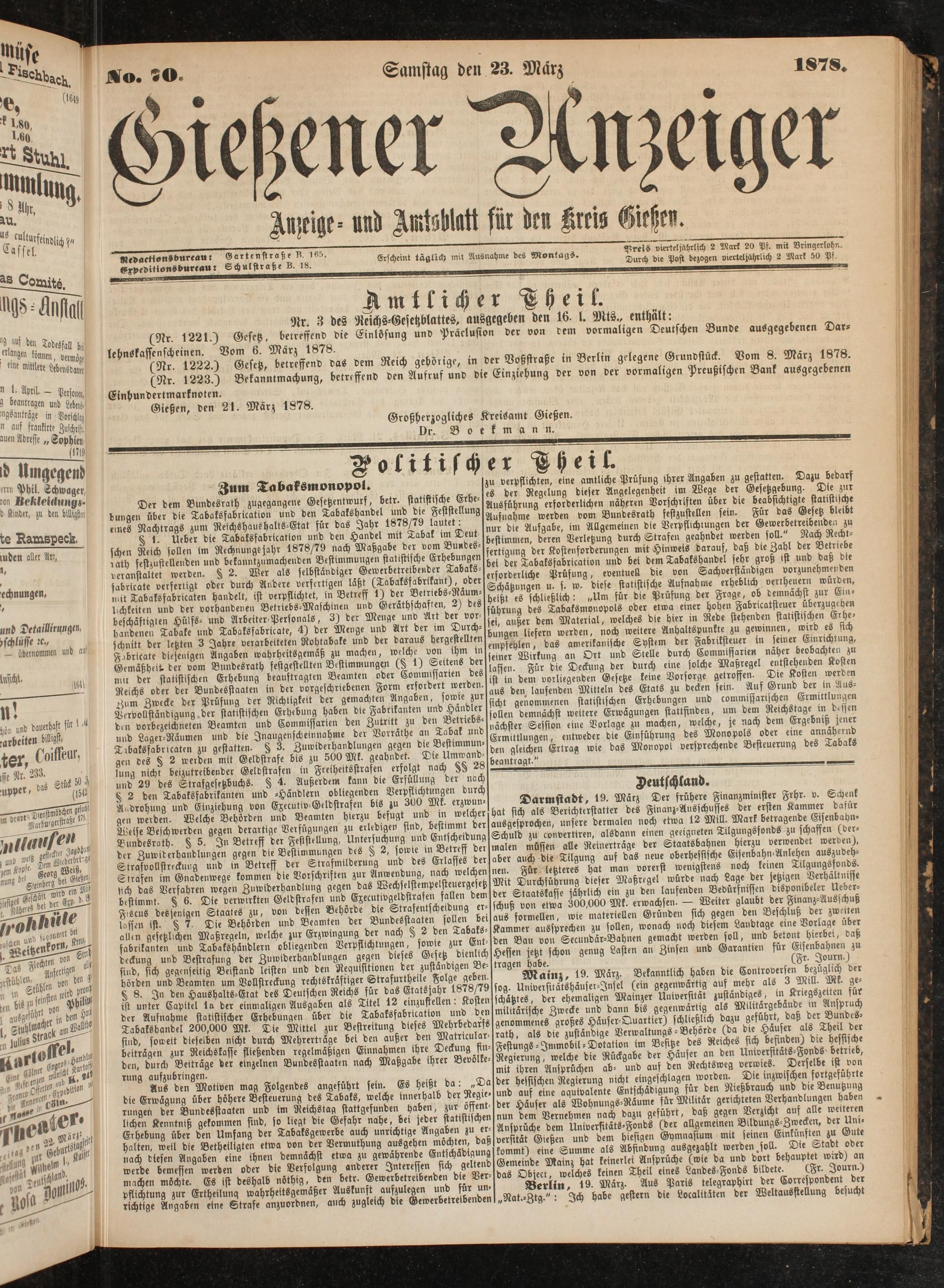 PreiS vierteljährlich 2 Mark 20 Pf. mit Bringerlohn. Durch bie Poft bezogen vierteljährlich 2 Mark 50 Pf.