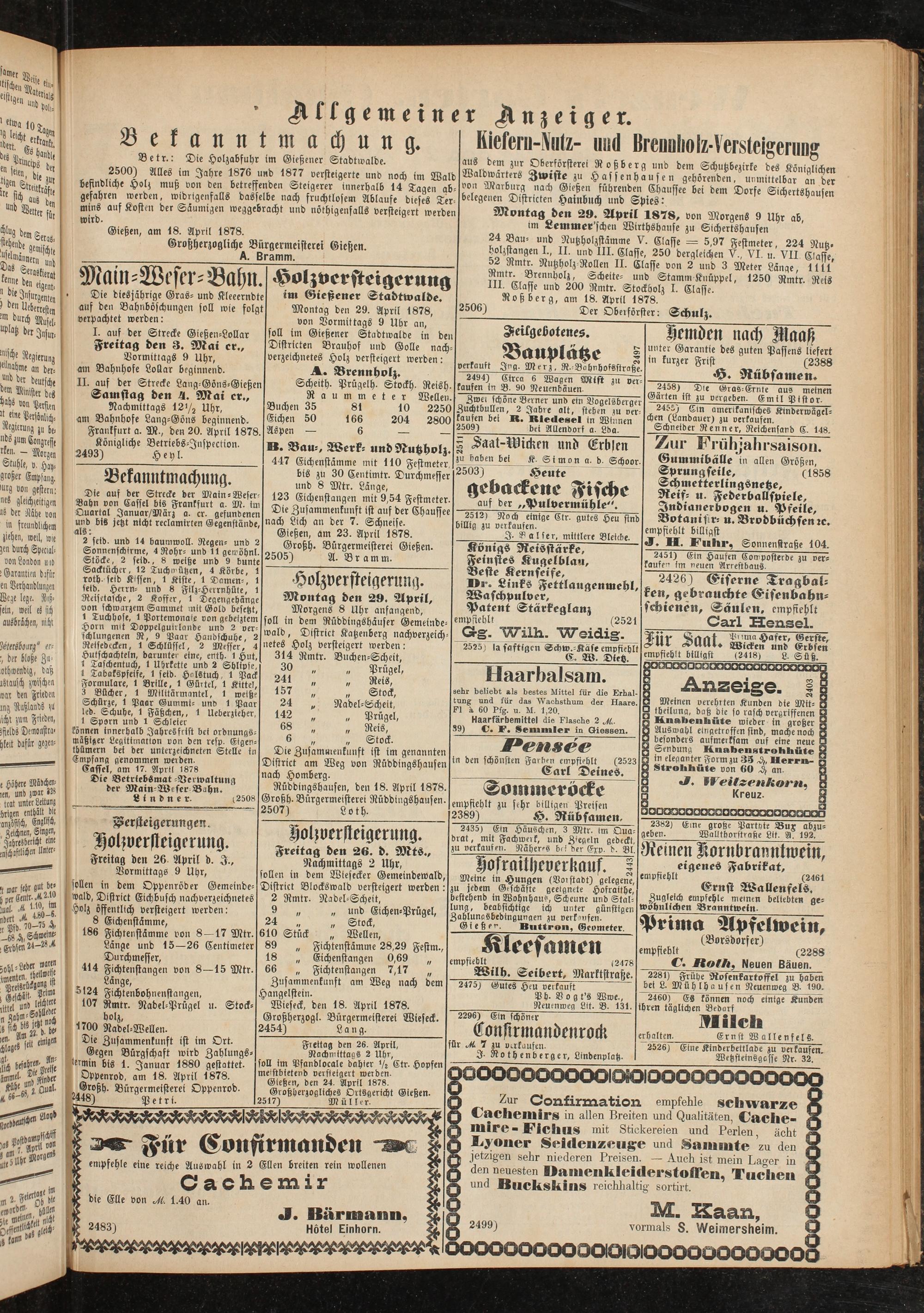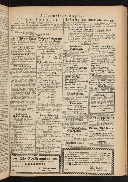 Gießen, den 24. April 1878. Großherzogliches Ortsgericht Gießen. 2517)__Müller.