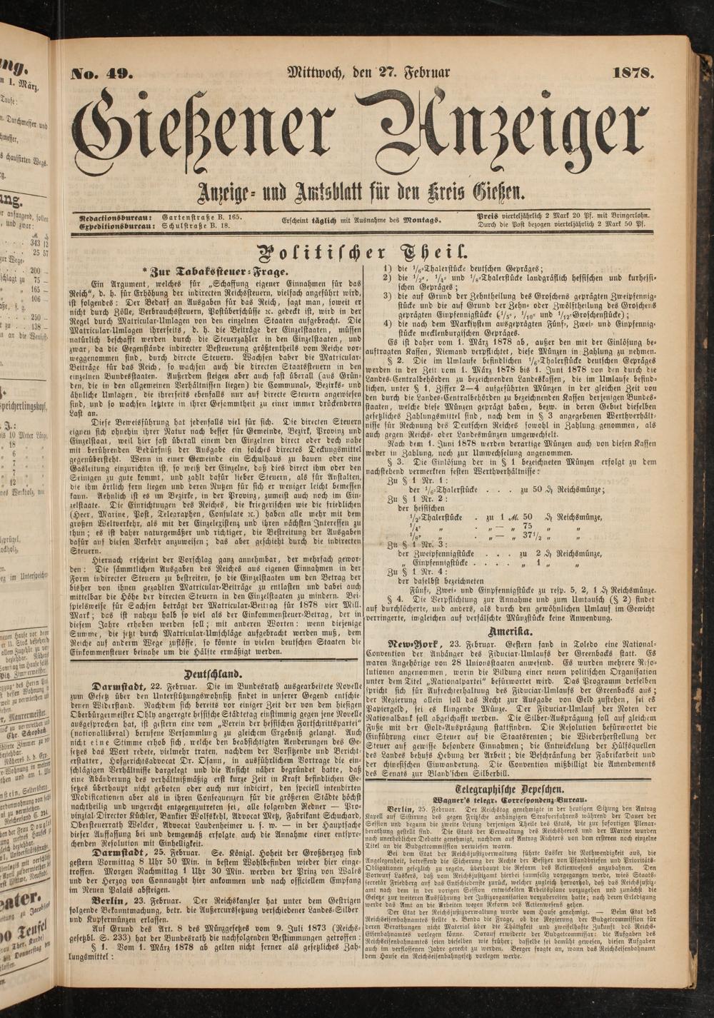 Hiernach erscheint der Vorschlag ganz annehmbar, der mehrfach geworden : Die sämmtlichen Ausgaben des Reiches aus eigenen Einnahmen in der Form indirecter Steuern zu bestreiten, so die Einzelstaaten um den Betrag der bisher von ihnen gezahlten Matricular-Beiträge zu entlasten und dabei auch mittelbar die Höhe der directen Steuern in den Einzelstaaten zu mindern. Beispielsweise für Sachsen beträgt der Matricular-Bettiag für 1878 vier Mill. Mark; das ist nahezu halb so viel als der Einkommensteuer-Betrag, der in diesem Jahre erhoben werden soll; mit anderen Worten: wenn diejenige Summe, die jetzt durch Matricular-Umschläge aufgebracht werden muß, dem Reiche auf anderm Wege zuflösie, so könnte in vielen deutschen Staaten die Einkommensteuer beinahe um die Hälfte ermäßigt werden.