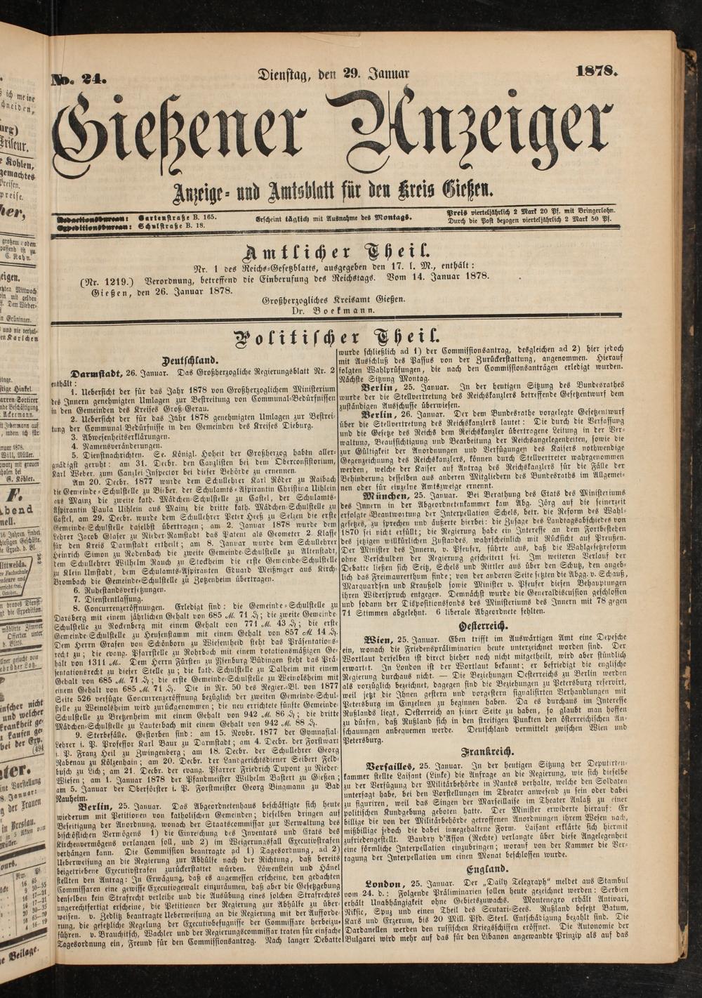 Am 20. Decbr. 1877 wurde dem Schullehrer Karl Röder zu Raibach tie Gemeinde-Schulstelle zu Bi'ber. der Schulamts-Aspirantin Christina Uihlein aut Mainz die zweite kath. Mädchen-Schulstelle zu Caftel, der Schulamts- Aspirantin Paula Uihlein aus Mainz die dritte kath. Mädchen-Schulstelle zu Castel, am 29. Decbr. wurde dem Schullehrer Peter Heeß zu Selzen die erste Gemeinde-Schulstelle daselbst übertragen; am 2. Januar 1878 wurde dem Lehrer Jacob Glaser zu Nieder-Ramstadt das Patent als Geometer 2 Klaffe für den Kreis Darmstadt erthetlt; am 8. Januar wurde dem Schullehrer Heinrich Simon zu Rodenbach die zweite Gemeinde-Schnlstelle zu Altenstadt, lern Schullehrer Wilhelm Rauch zu Stockheim die erste Geweinde-Schulstelle zu Klein Umstadt, dem Schulamts-Aspiranten Eduard Meißmger aus Kirch- Brombach die Gemeinde-Schulstelle zü Zotzenheim übertragen.