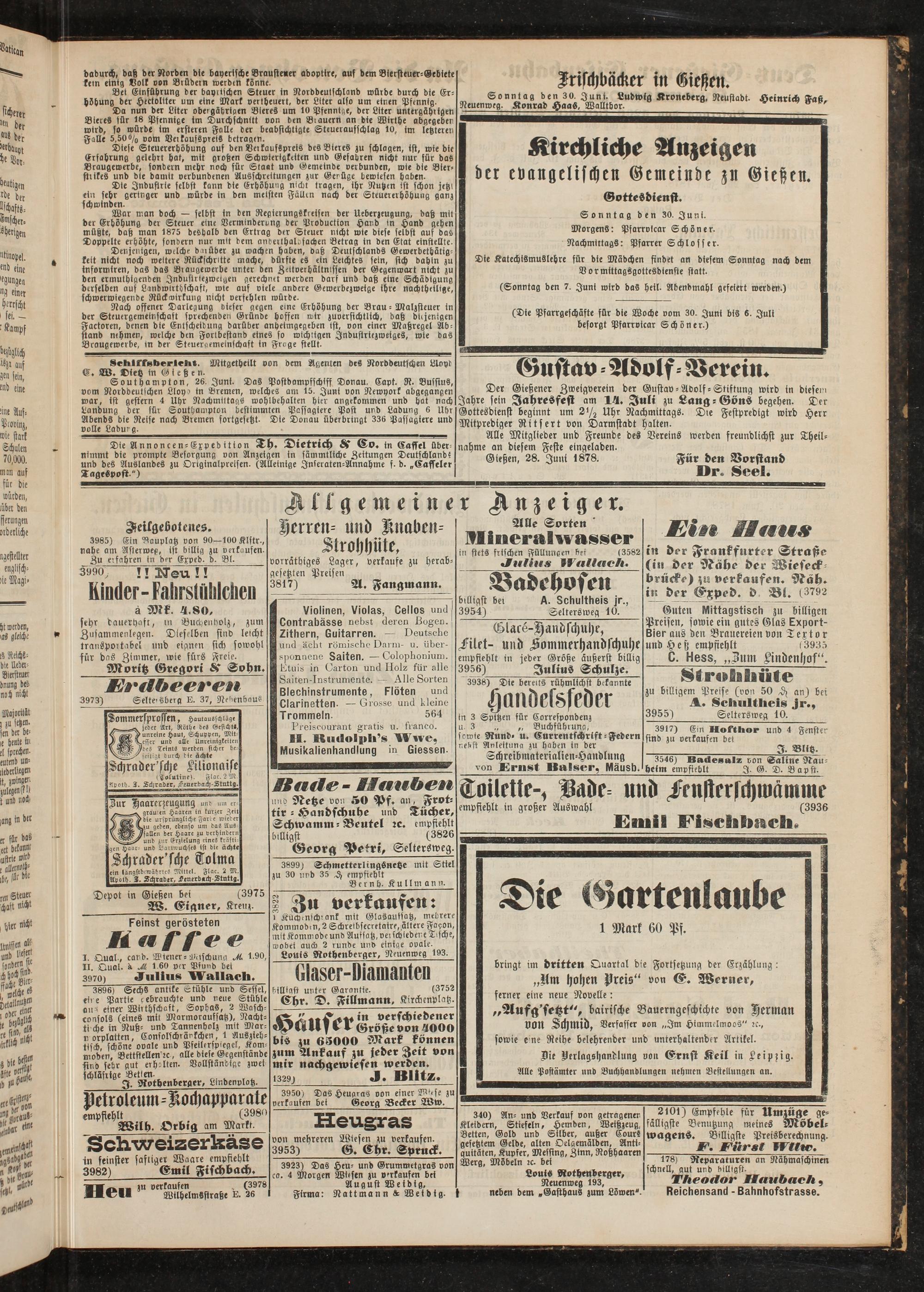 Gießen, 28. Juni 1878. Für den Vorstand