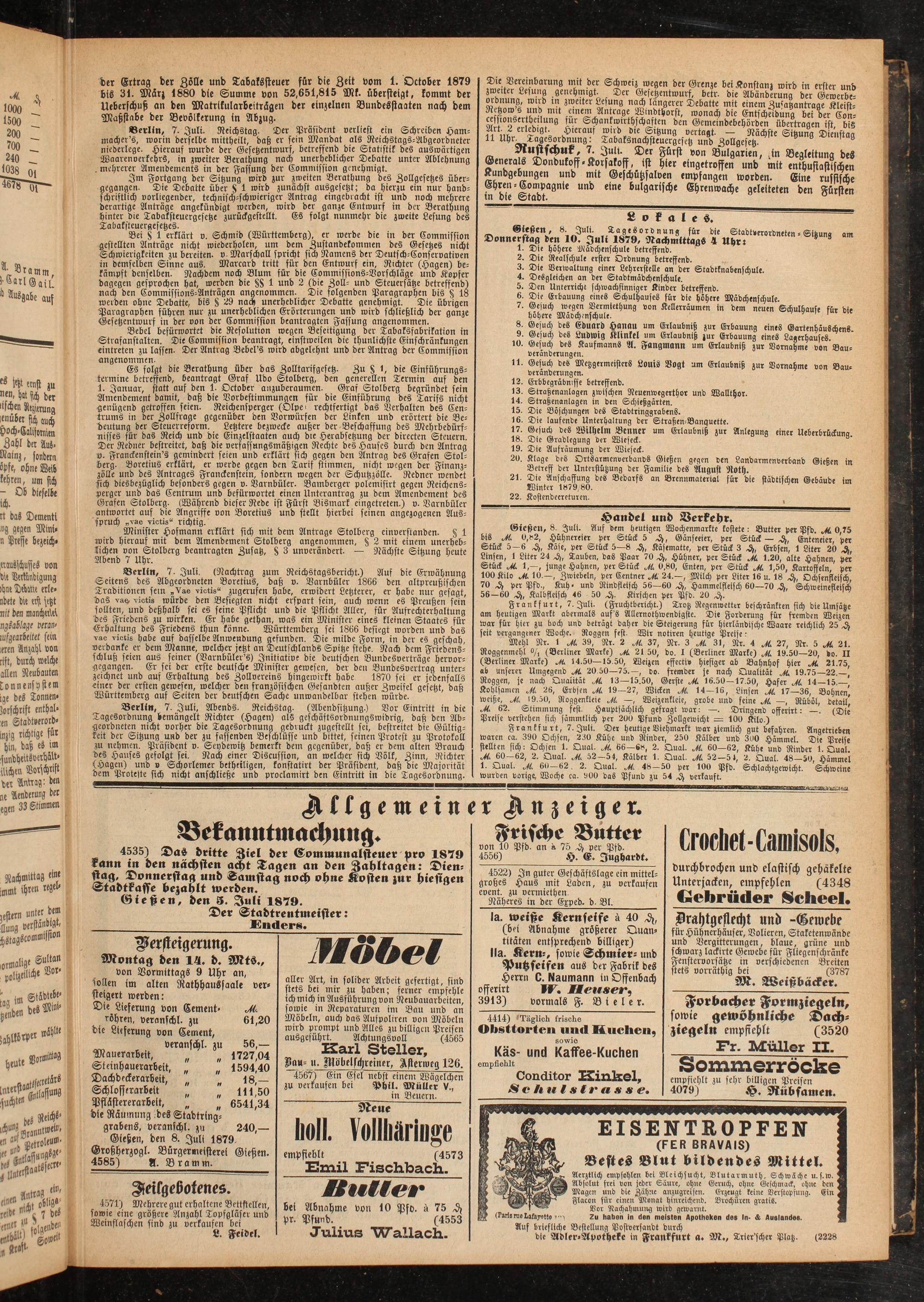 Gießen, den 8. Juli 1879 Großherzogl. Bürgermeisterei Gießen. 4585) A. Bramm.