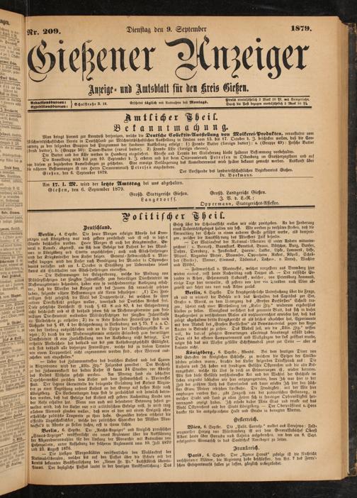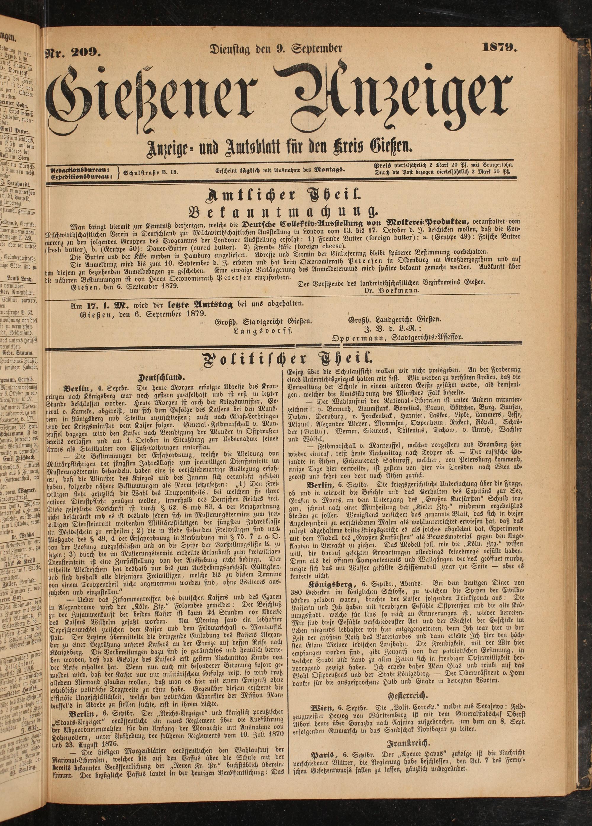 Am 17. l. M. wird der letzte Amtstag bei uns abgehalten. Gießen, den 6. September 1879. ' ... -