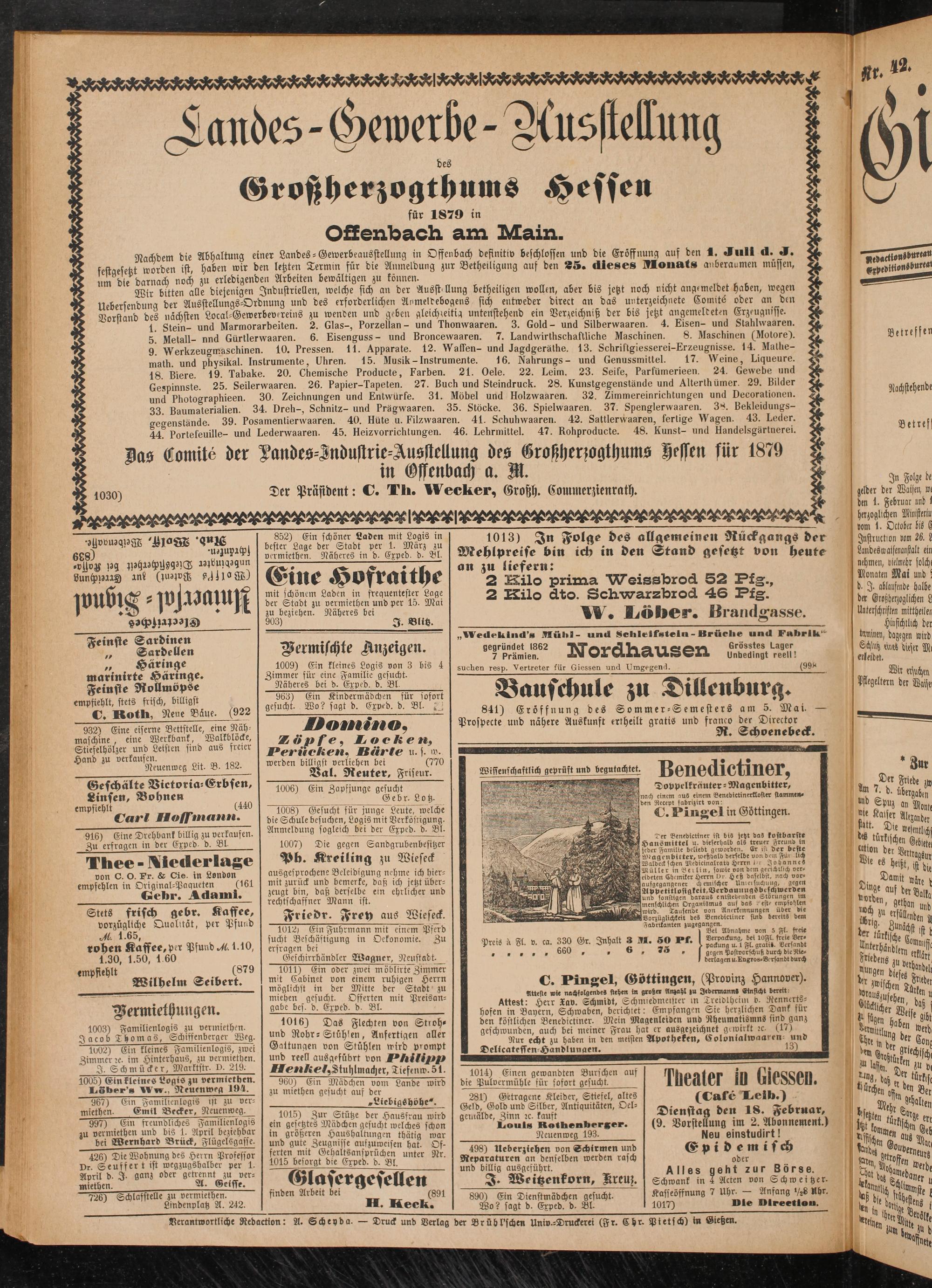 Das Comite der Mndes-Indussrie-Ausftellung des Großherzogthums Hessen für 1879 8 in Ossenbach a. M. M
