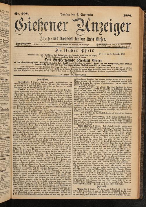 Betreffend: Die Ausführung des Gesetzes vom 10. September 1878 über den Schutz ^^ßen, am 4. September 1880. der in fremde Verpflegung gegebenen Kinder unter 6 Jahren.
