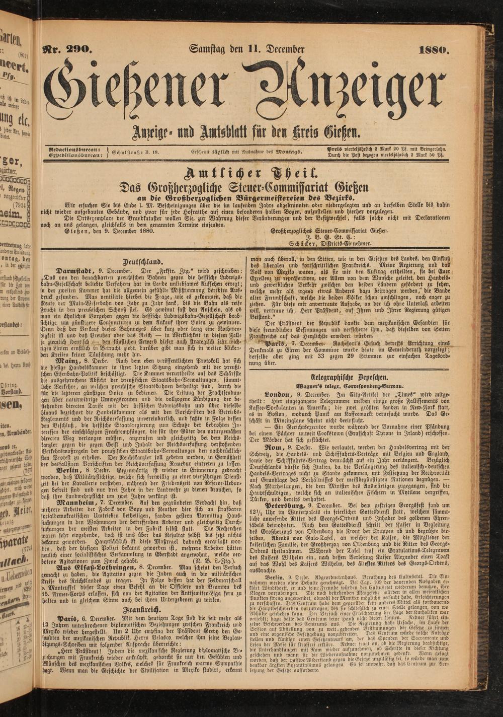 Gießen, den 9. December 1880. Großherzogltches Steuer-Commiffariat Gießen.