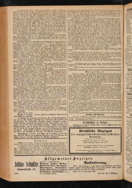 Sonntag, den 12. December. Daniel Rühl, Marktstraße. Martin Lenz, Mark,, platz. Emil Noll, Löwengasse.