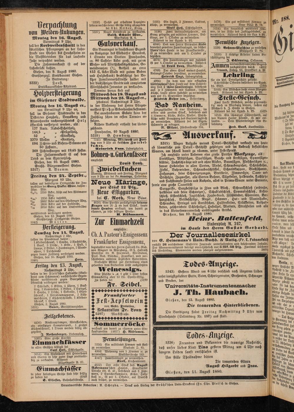 Gießen, den 9. August 1880. Großherzogl. Kreisbauamt Gießen. In Vertretung: