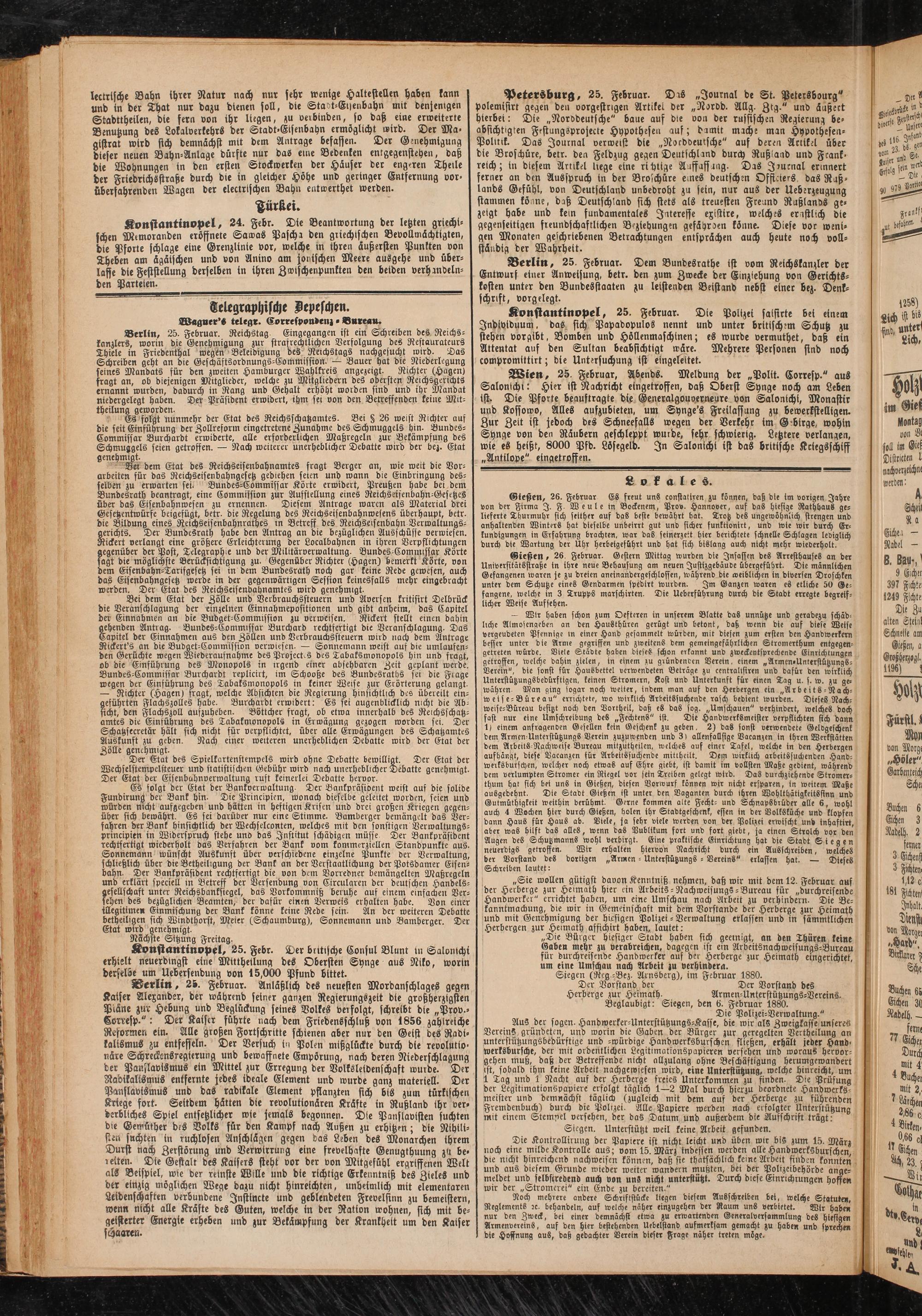 Siegen (Reg -Bez. Arnsberg), im Februar 1880.