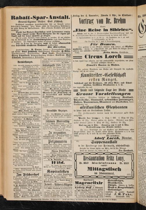 Den geehrten Bewohnern von Gießen und Umgegend die ergebenste Anzeige, daß ich mit meiner
