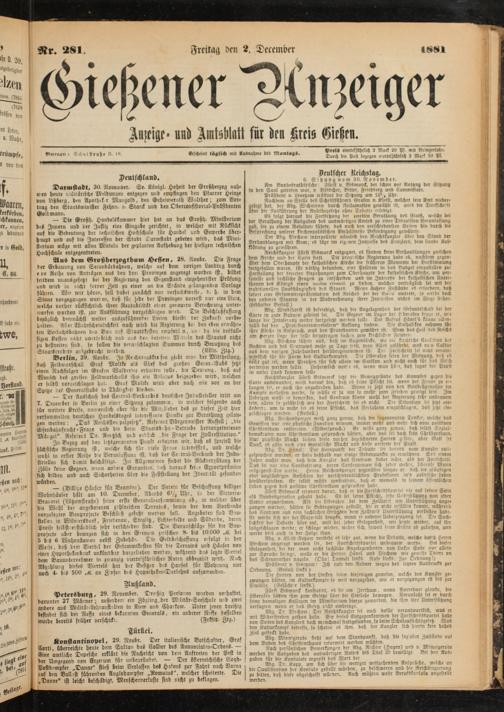 Anzeige- unb Amtsblatt für btn Kreis Gießen.
