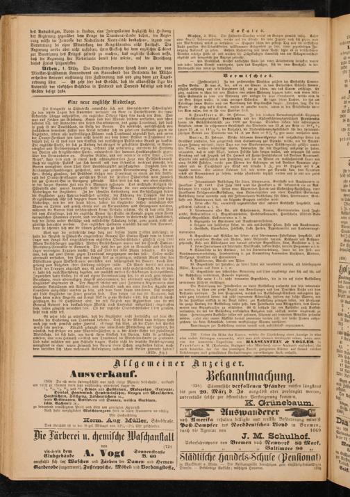 Auswanderer ""ME- nach Ainerika erhalten billigste unv reellste Beförderung mittelst Post-Dampfer des Norddeutschen Lloyd in Bremen, durch die Agentur von 1069