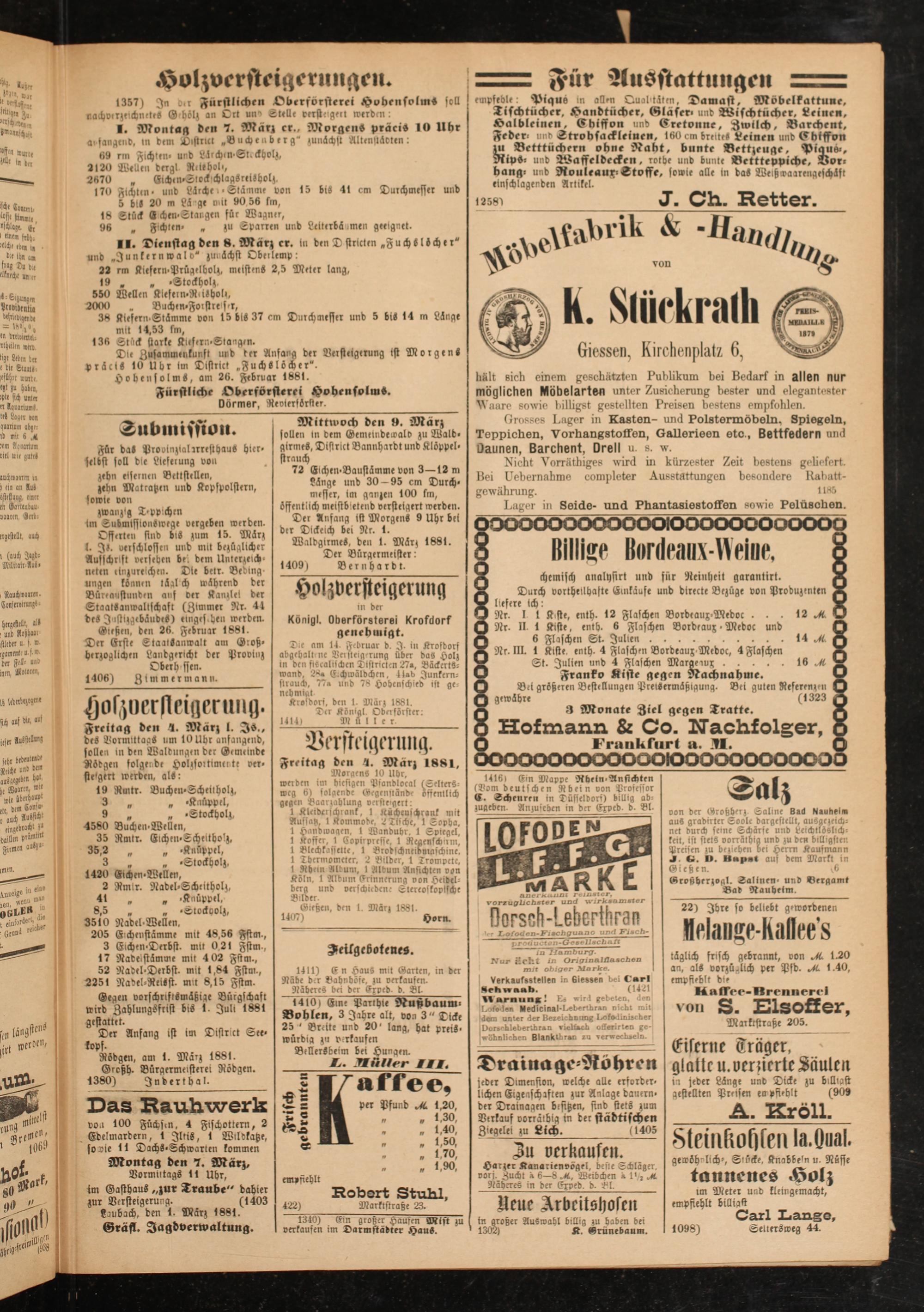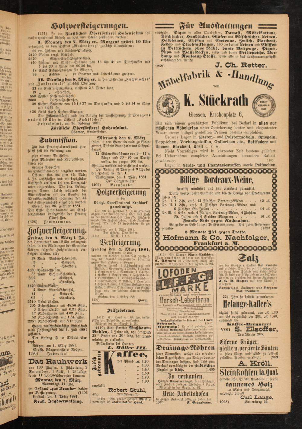 Bubach, den 1 März 1881. Gräfl. Iagdverwaltung.
