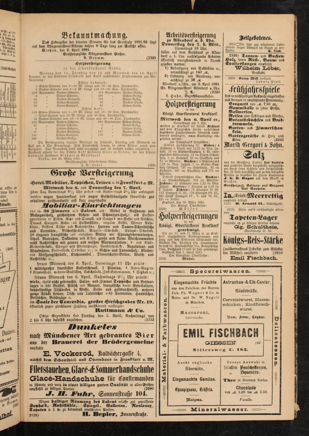 Krofdorf, ben 1. April 1881.