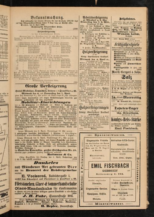 im Saale der Concordia, großer Hirschgraben Nr. 19, öffentlich gegen gleichbaare Zahlung meistbietend versteigert.