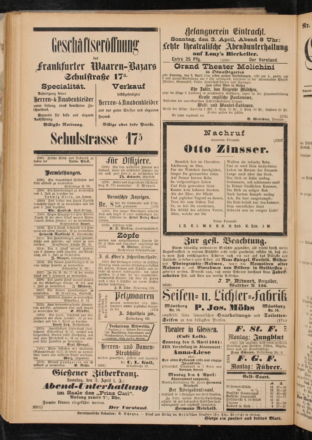 Sonntag den 3. April 1881: