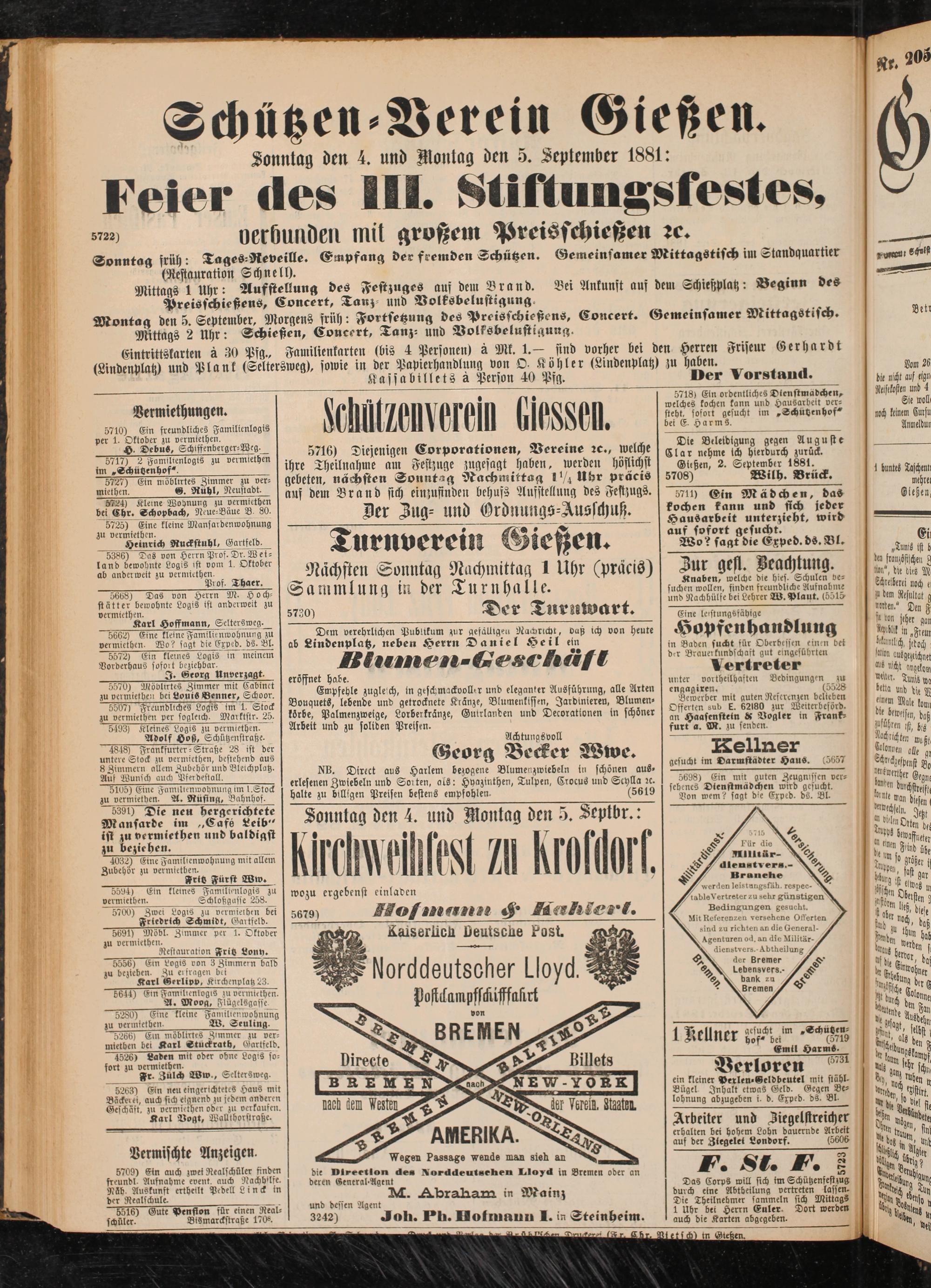 Montag den 5. September. Morgens früh: Fortsetzung des Preisschießens, Concert. Gemeinsamer Mittagstttcb.