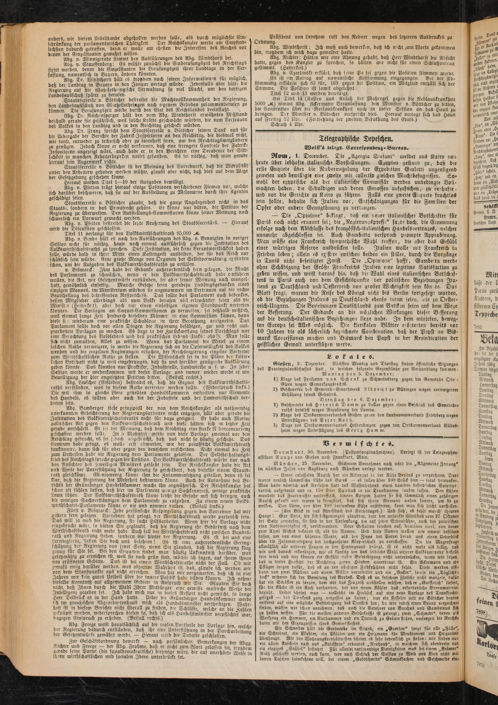 — Die „Opinione" beklagt, daß ein neuer italienischer Botschafter für Pans noch nicht ernannt sei; die „Regierunaspreffr" sa^te doch, die Ernennung erfolge nach dem Abschlüsse des französisch-italienischen Handelsvertrages, welcher nunmehr abgeschlossen sei. Auch Garnbetta versprach prompte Approbirung. Man muffe eine Frankreich sympathische Wahl treffen, die aber bad Gesübl einer würdigen Reserve ausdrücken solle. Italien wolle mit Frankreich in Frieden leben ; allein es ex stire zwischen beiden ein stiller, durch die Vorgänge in Tunis nicht beseitigter Zwist. Die „Opinione" hofft, Gambeita werde ohne Schädigung der Größ? Frankreichs Italien eine legitime SatiSsaction zu geben wissen, und weist daraus hin, daß dir Wadl eines italienischen Botschafters in Paris auch von bem Gesichtspunkte ber politischen Beziehungen Italiens zu Deutschlanb und Oesterreich von großer Wichtigkeit fein kön >te. Das Blatt fragt, warum die Reise des Königs nicht bis Berlin fortgesetzt worden, ob die Beziehungen Italiens zu Deutschland ebenso intim seien, wie zu Oesterreich-Ungarn. Die Beziehungen Deutschlands zum Vatikan seien auf dem Wege ber Besserung. Der Gebanke an die möglichen Wirkungen dieser B fserung aus die deutsch-italienischen Beziehungen liege nabe. In dem minirten, bewegten Europa sei AlleS möglich. Die klerikalen Blätter erörterten bereits vor 10 Jahren die als lächerlich bezeichnete Combination, daß der Papst an Bismarck Concessionen machen und Bismarck den Papst in der Revindication der geistlichen Gewalt unterstützen werde.