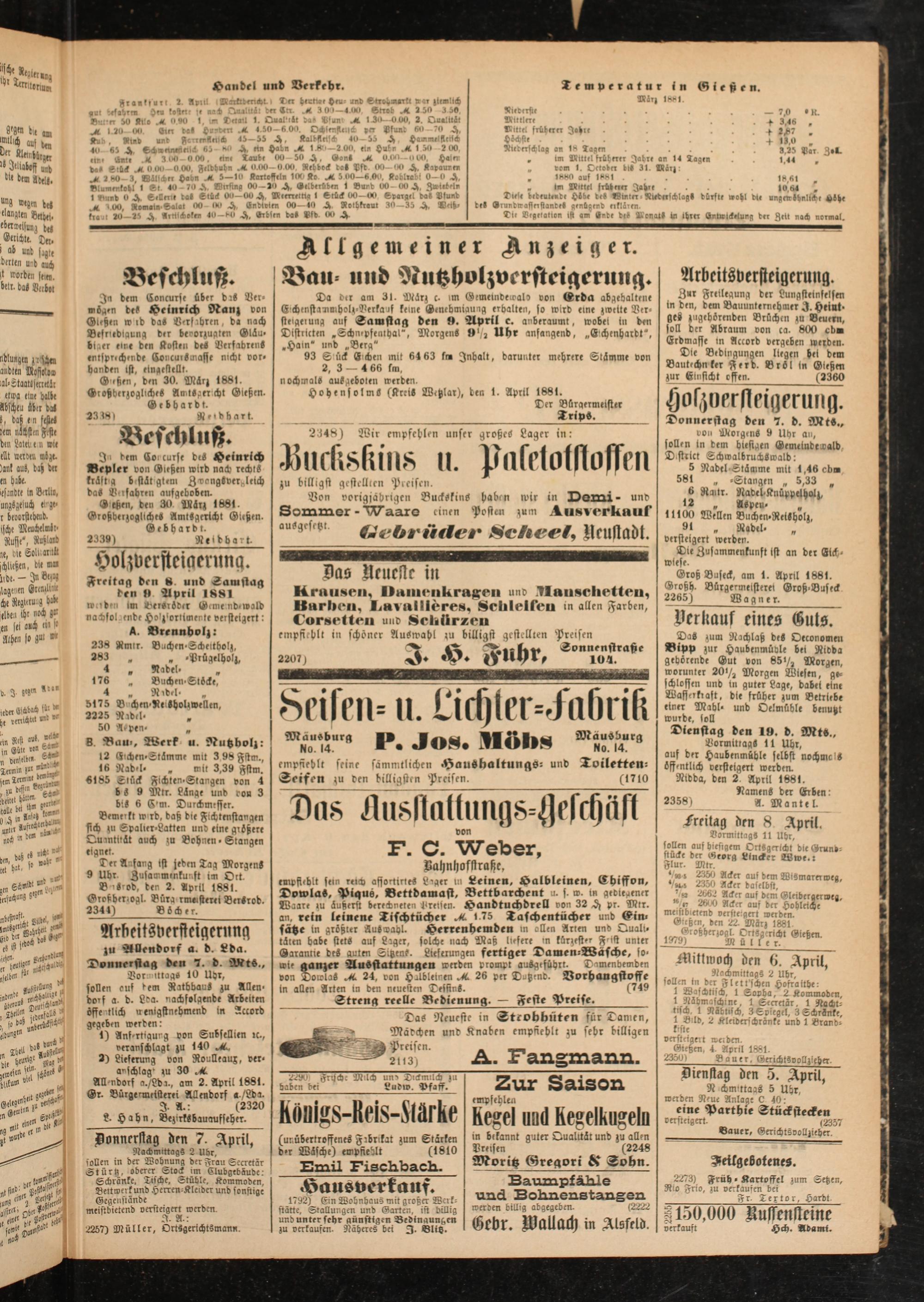 Geßen, den 30 März 1881. GroßderzoglicheS Amtsgericht Gießen. Gebhardt.