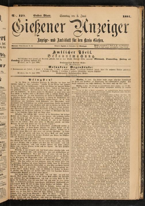 Gießen, am 3. Juni 1881. GroßherzsgltLeS Kreisamt Gitßen.