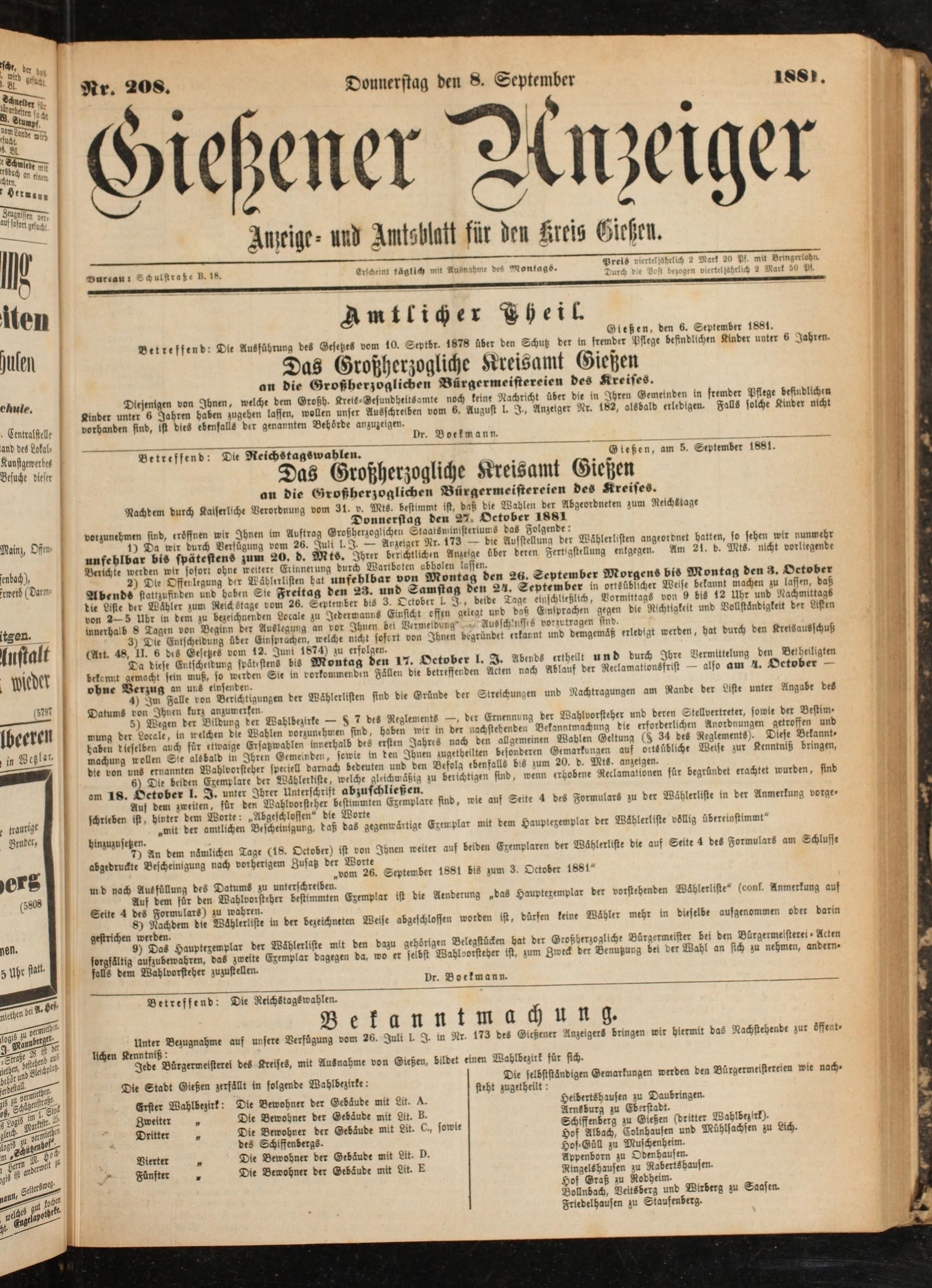 Xmciae- Hui AmtübKN für iicn Kreis Gießen.