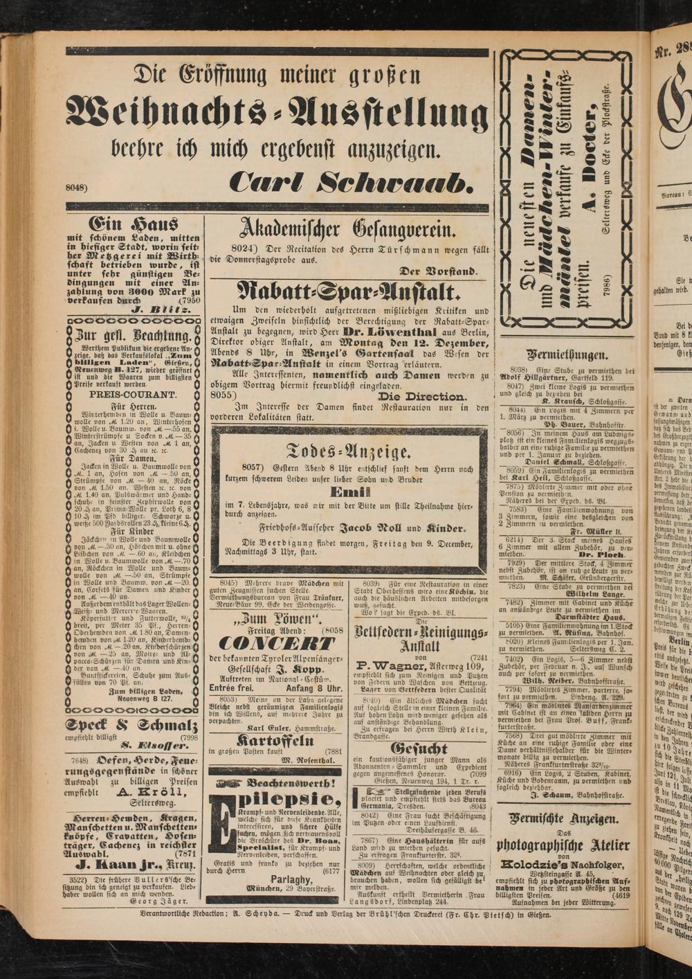 Verantwortliche Redaction: A. Scheyda. — Druck und Verlag der Brühl'schen Druckerei (Fr. Chr. Pietsch) in Gießen.
